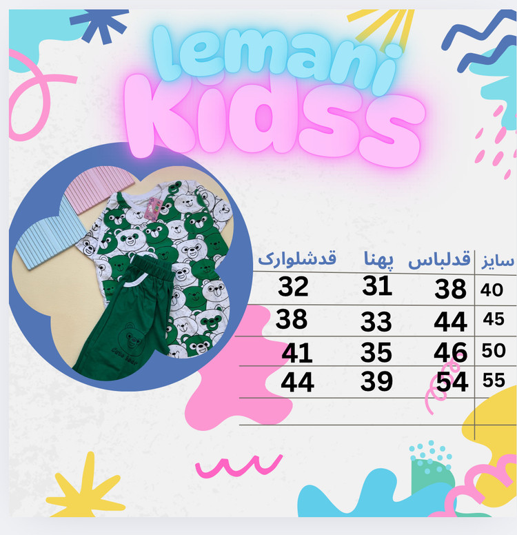 ست تیشرت شلوارک اسپرت طرح خرس سایز ۴۰،۴۵،۵۰،۵۵