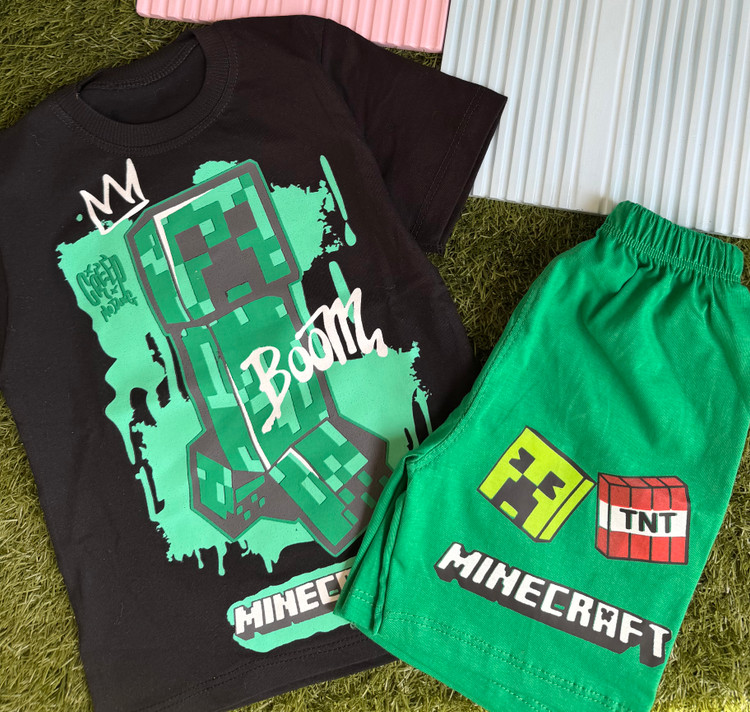 ست تیشرت و شلوارک پسرانه طرح ماینکرافت