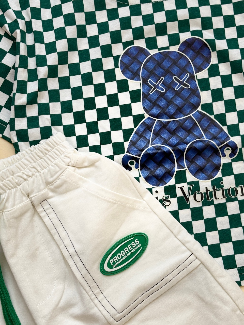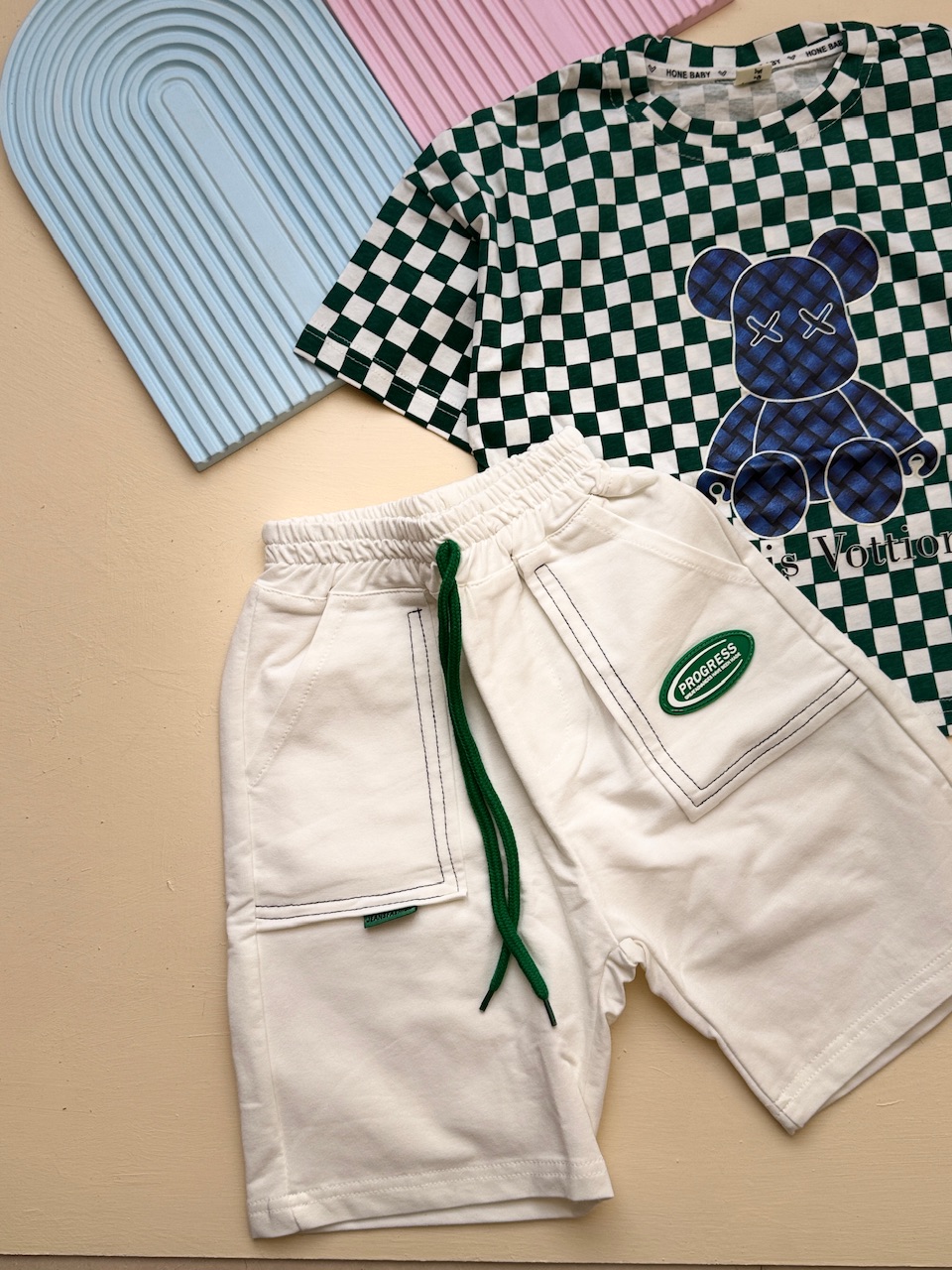 ست تیشرت شلوارک اسپرت وارداتی طرح شطرنجی مناسب ۴تا۹سال
