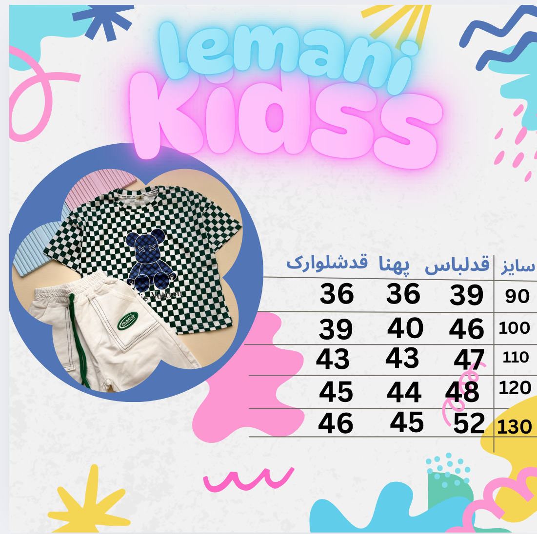 کد ۲۵ سایز90قدبلوز 39پهنا37قدشلوارک سایز100قدبلوز45پهنا40قد شلوارک36 سایز110قدبلوز47پهنا43قدشلوارک39 سایز120قدبلوز48پهنا44قدشلوارک43 سایز130قدبلوز52پهنا45قدشلوارک45 سایز140قدبلوز54پهنا47قدشلوارک48 #ست_پسرانه_لمانی