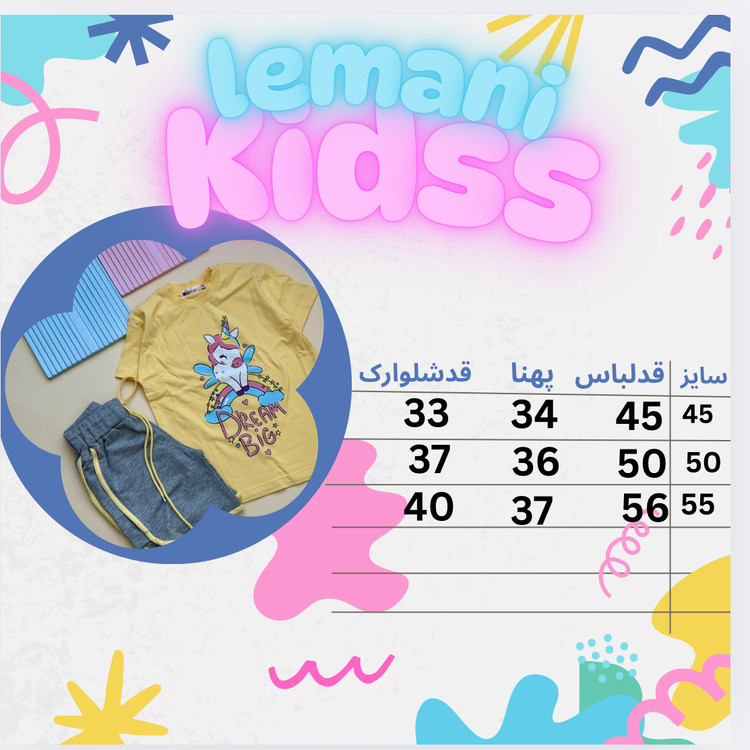 سایز بندی ۴۵،۵۰،۵۵ سایز۴۵قدبلوز ۴۵پهنا ۳۴قدشلوارک ۳۳ سایز۵۰قدبلوز ۵۰پهنا ۳۶قدشلوارک ۳۷ سایز ۵۵قدبلوز ۵۶پهنا ۳۷قدشلوارک۴۰ #ست_دخترانه_لمانی